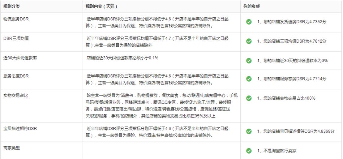 只截取了部分哈,还有开店时长、聚划算30天退款率、店铺近90天金额退款率、聚划算近30天未发货退款率、半年正常计分的评论数等等,这些都是硬性指标哦,也就是说你想要申报聚划算活动,这些要求是必须要达到的,达到以后你才有资格去报名。
