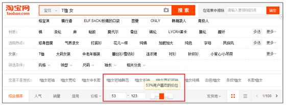如图,你的价格在53——123之间都可以。也就说数,你夏天的T恤卖70块钱,你冬天的毛呢大衣卖500块钱,这是不影响你的店铺标签的。