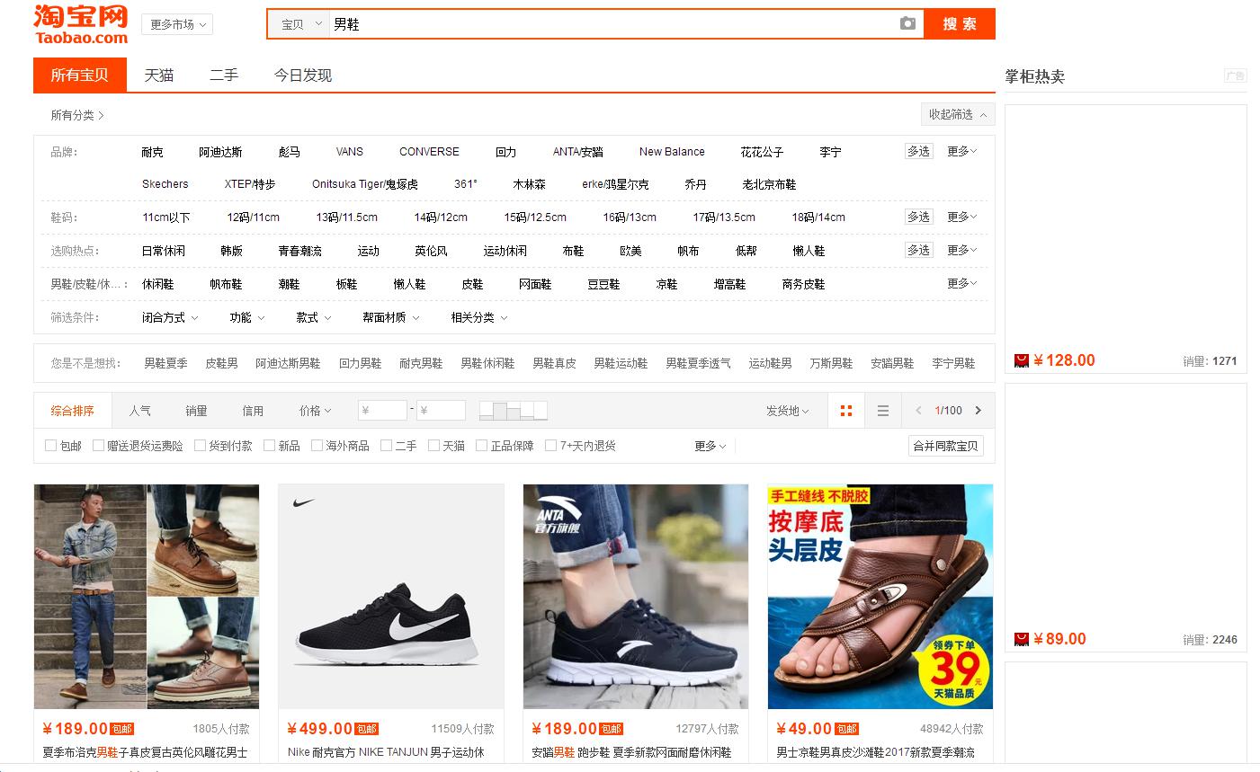 1.我们可以用淘宝首页的下拉框,输入我们产品的核心词来搜索,主要看下拉词以及人气较高的名词中找有没适合我们的关键词。