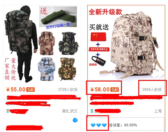 为什么要找价格偏高的产品呢?像市场上那些9.9包邮的产品,讲究款式吗?不讲究吧,买这样产品的买家看重的只是价格,不会看款式的,只要是他需要的,而且价格便宜,他就会购买。如果你买100块钱的登山包和买9.9的登山包,你在产品的选择上哪一个你更偏向于款式的选择,道理很简单。