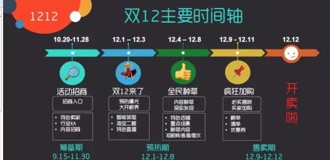 ●12月12日当天就是卖卖卖、买买买。这个时候内容会发生一个比较大的转变,转向成交导向,可能会有榜单,一些必买清单,来实现成交。